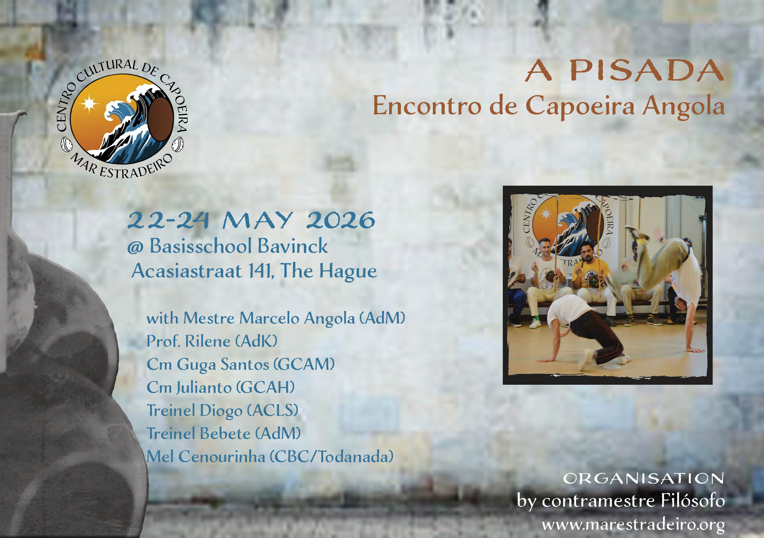 Welcome to A Pisada, our third encounter of capoeira Angola! This year we invited a selection of teachers, contramestra/es of capoeira Angola e the Afro-Brazilian musical traditions. And we are boosting the axé with the presence of mestre Marcelo Angola. You can find the programme and registration here.